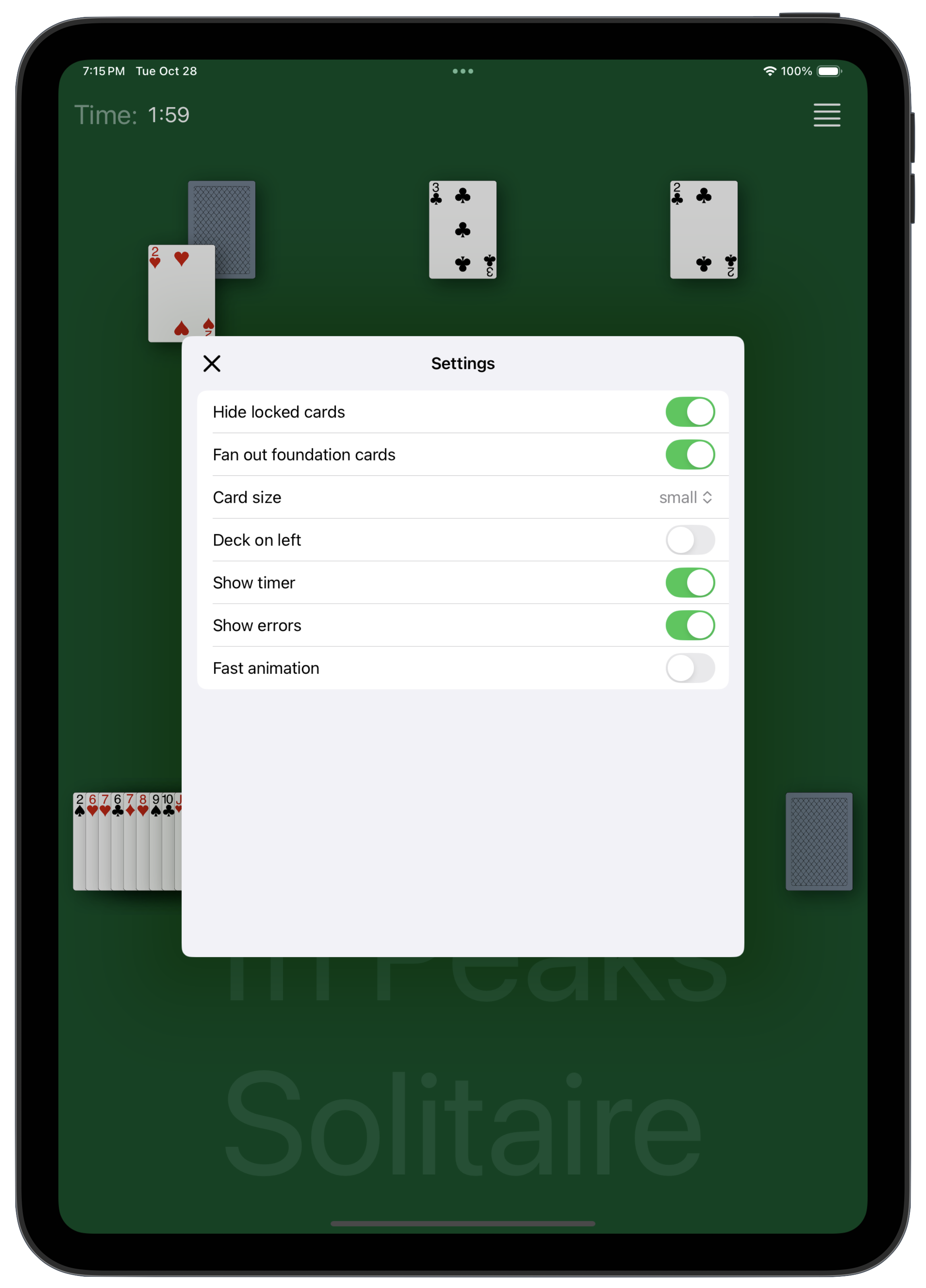 The cards in the three peaks can be shown, this is controlled by the Settings.